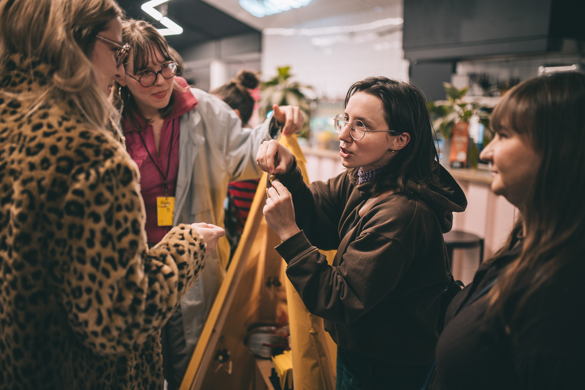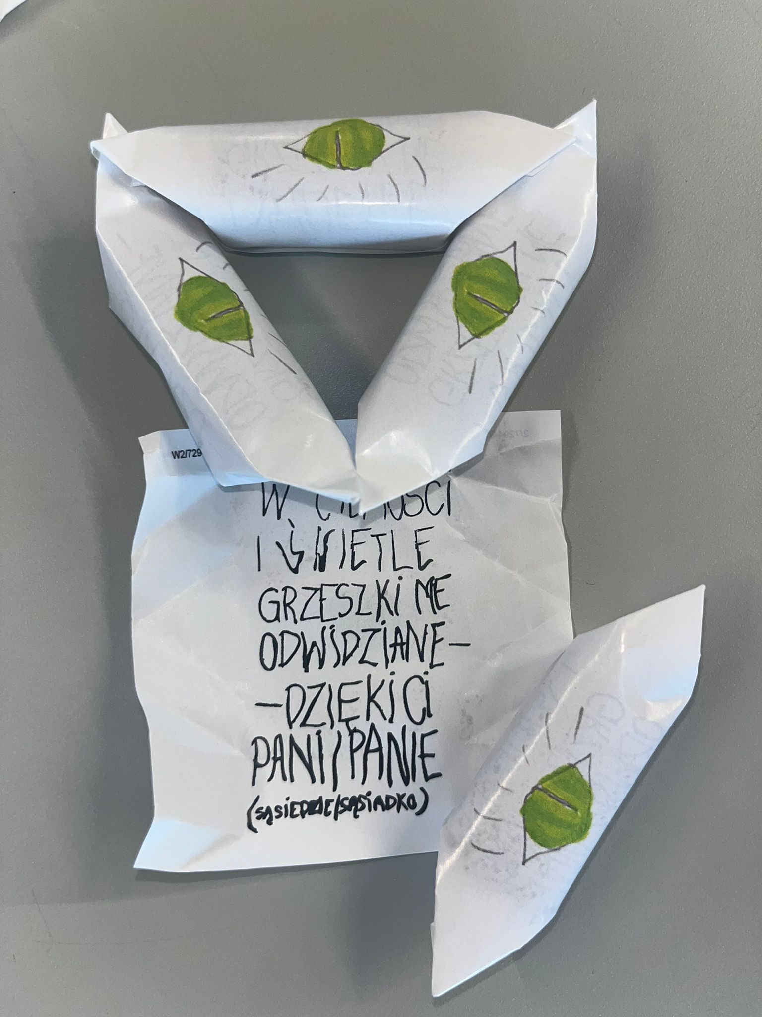 Kłobuk na drogę is an interactive and mobile urban installation which was presented at the 13th MIASTOmovie urban film festival between 1-5.10.2025 by me (Alicja Zwierz) and an artist Wiktoria Kucharczak.